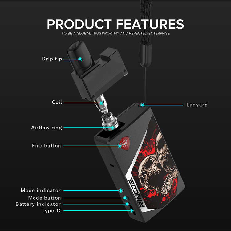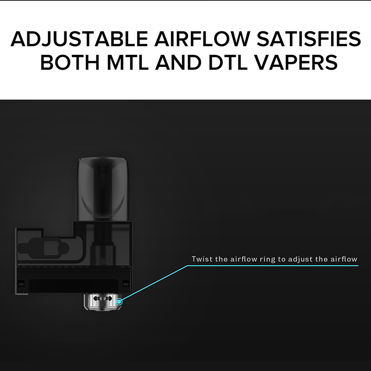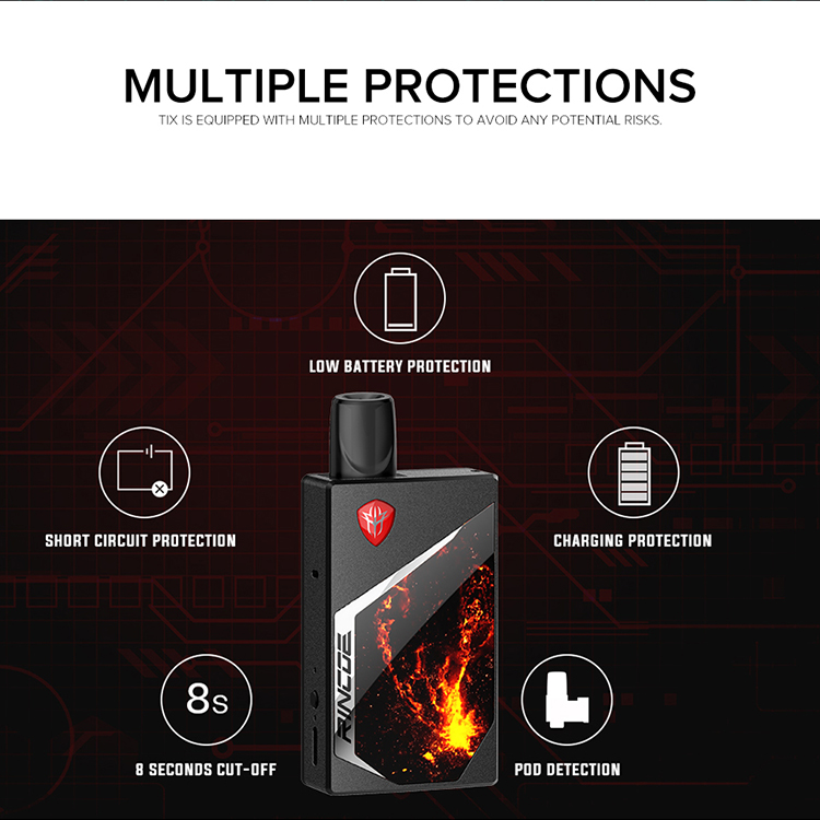 Rincoe Tix Pod Kit is pretty portable and delicate for its function of Type-C quick charging. It also allows battery of 1000mAh power capacity. It is equipped with 3 power modes which are available for users to have individual options. For the coils, it matches ceramic coils except regular one. What’ more, it has adjustable airflow system, which is convenient to have a pure taste and massive clouds. Thus, with diverse colors, Rincoe Tix Kit is taking advantage of being effective and stylish, which brings you comfortable vaping experience.